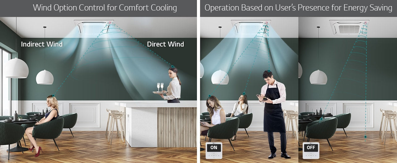Avec un design compact et moderne, ce climatiseur cassette est particulièrement adapté aux environnements professionnels et résidentiels où l'efficacité et le confort sont primordiaux. Il est également compatible avec des installations où l'espace au plafond est limité, tout en assurant une répartition homogène de l'air.