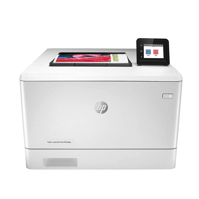 - HP Color Laserjet Pro M454dw (W1Y44A) - imprimante couleur : impression, A4 (couleur ; recto-verso ; jusqu’à 27 ppm ; USB 2.0 + Gigabit Ethernet + Wi-Fi)