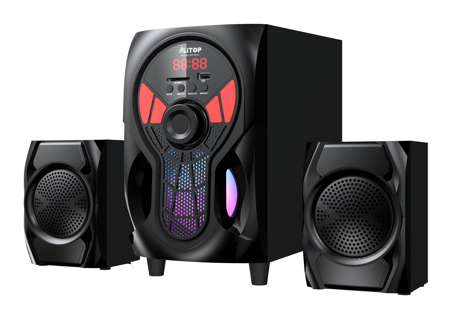 Le Woofer Alitop SP-4503 est un système audio 3.1 canaux puissant et élégant, parfait pour votre salon, vos soirées et vos événements en Côte d’Ivoire. Profitez d’un son clair et immersif grâce à son caisson de basses 6.5 pouces et ses satellites de qualité.